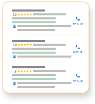 Nous mettons en place des stratégies performantes qui respectent les critères de Google, garantissant ainsi une meilleure position dans les résultats des recommandations de Google.